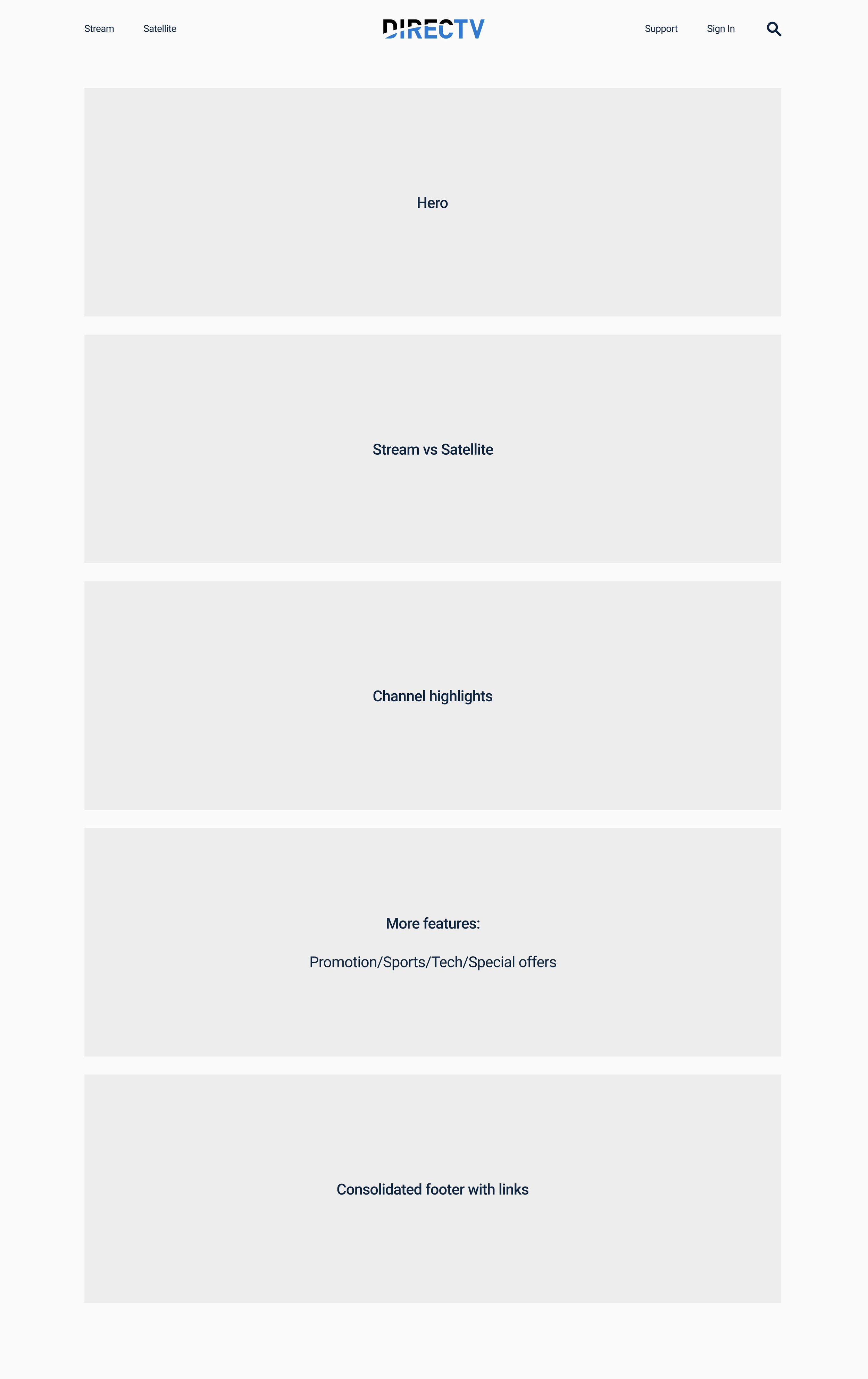 For the redesign we developed a cohesive site map while elevating the digital brand identity to clearly communicate DIRECTV’s two product offerings. Establishing a clear distinction between Satellite and Stream.